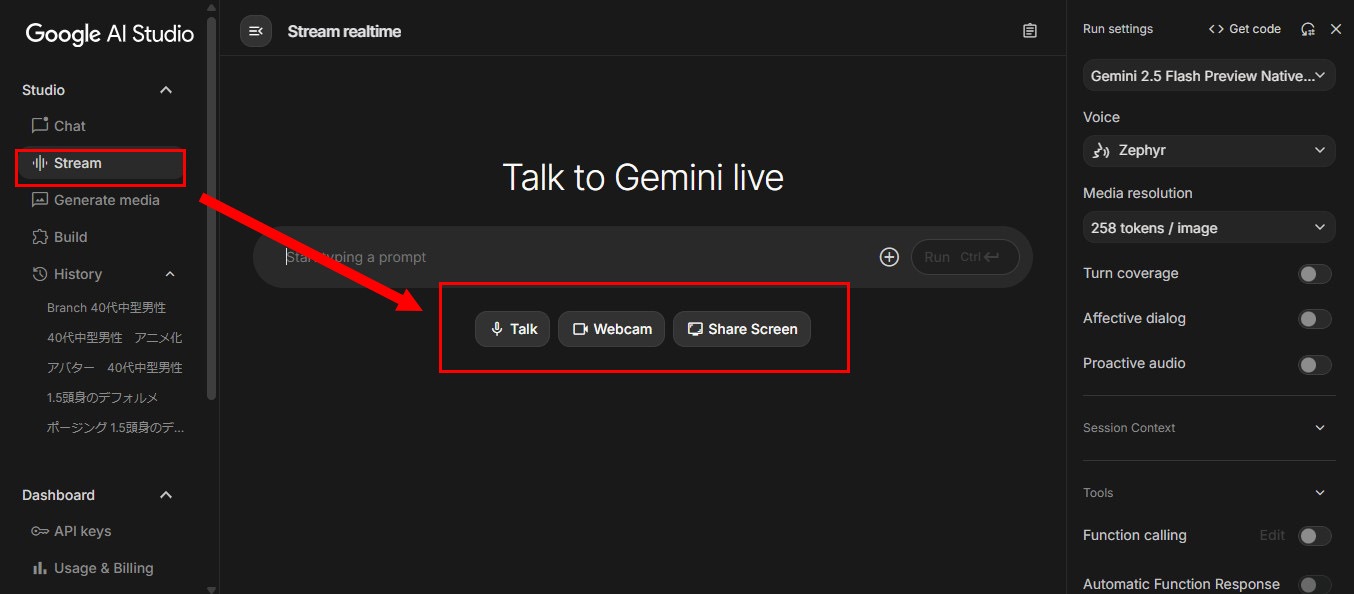 「Stream(Talk to Gemini live)」