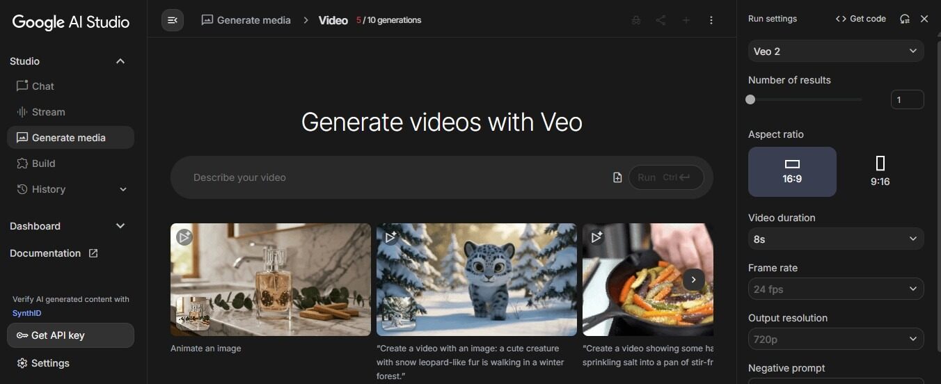 「Veo」は動画生成AIで、バージョン2がこの「Google AI Studio」で利用することができます。