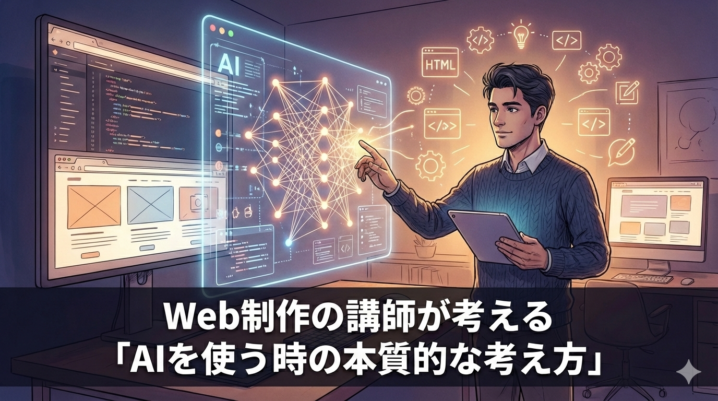 Web制作の講師を始めてもうすぐ4年になりますが、その間にAIツールがかなり普及してきました。 「ChatGPT」がメジャーになったのを機に、AIの進化が止まるところを知らず、AIに関して一度は耳にしたことがあるのではな…