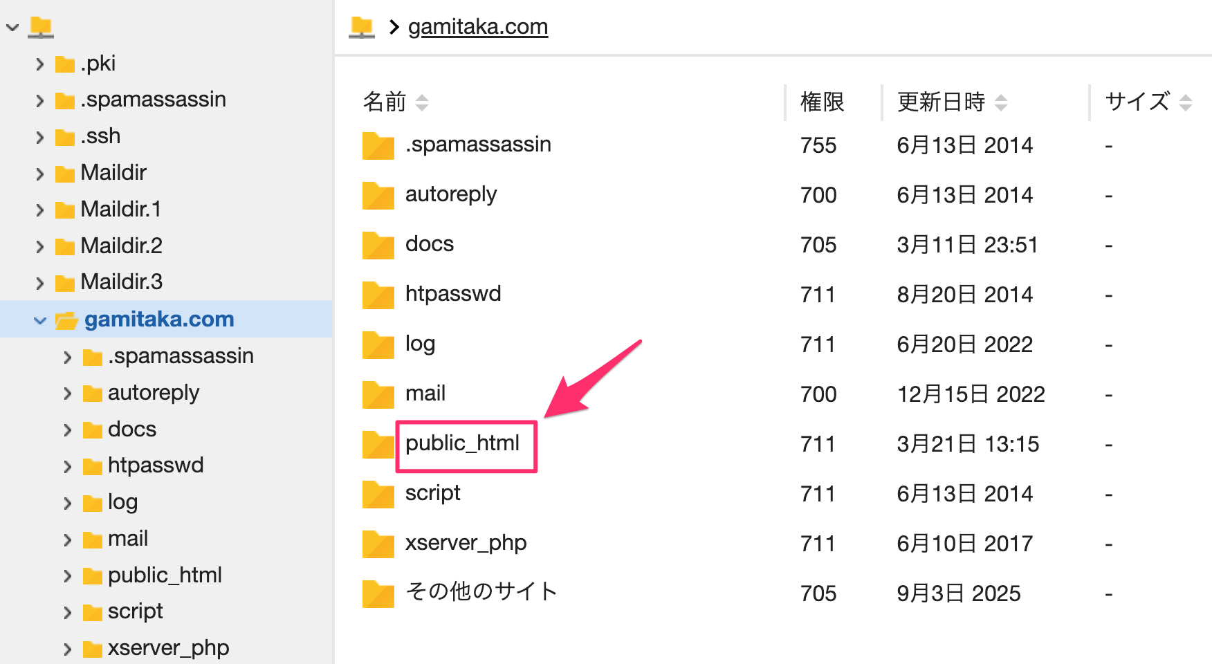 2.「public_html」を開く。