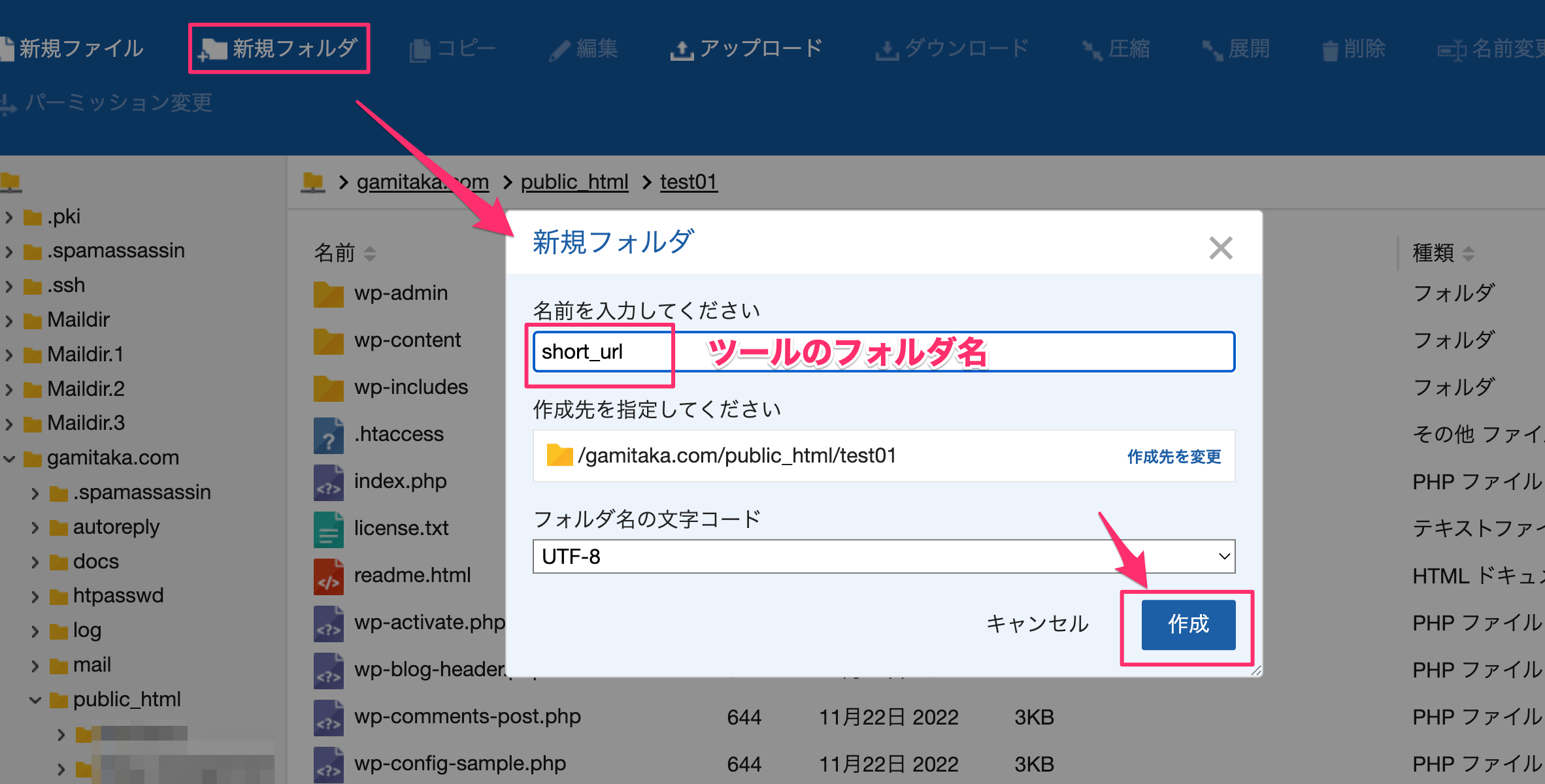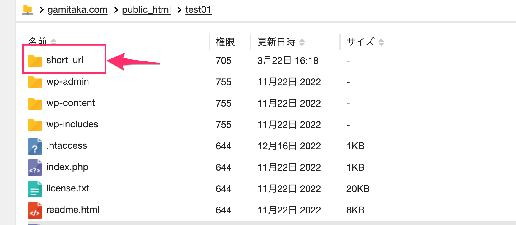 ※ここでは「short_url」としていますが、このフォルダ名は任意で変更可能です。