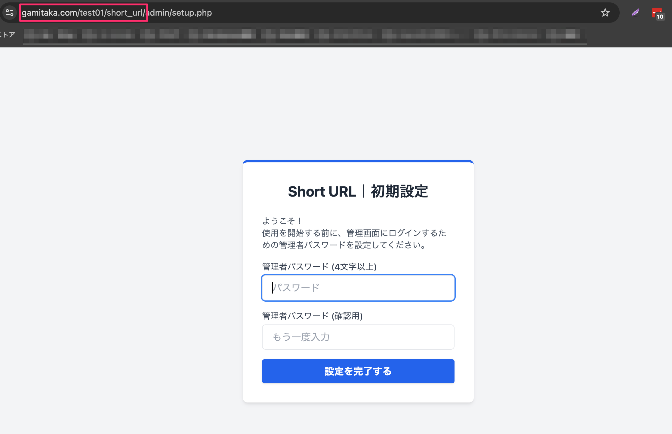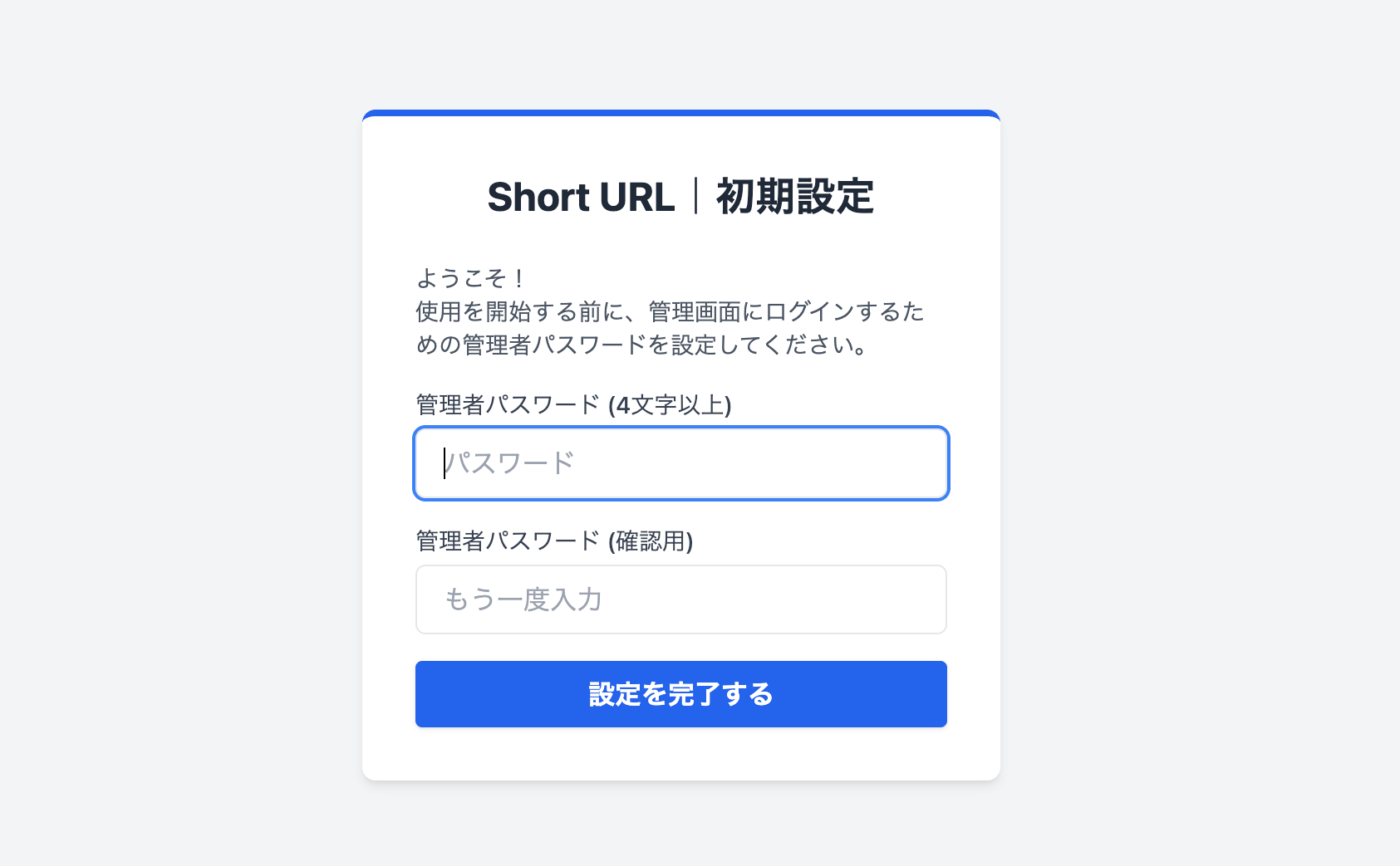順番が前後してしまいますが、このツールでは管理画面で短縮URLを生成するため、外部からアクセスされないように初回起動時にパスワードを設定します。
