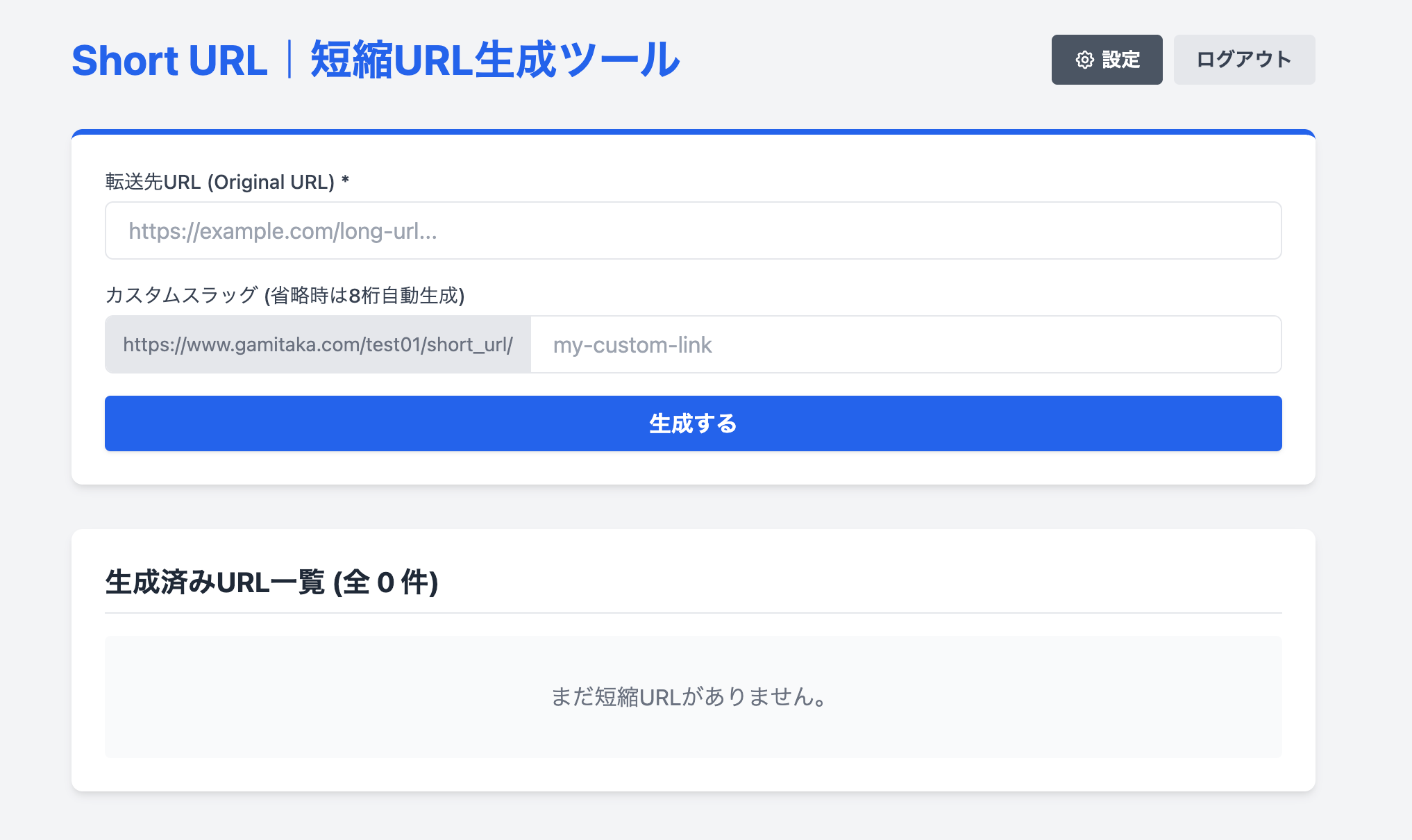 - 「生成する」をクリックすると短縮URLを生成。