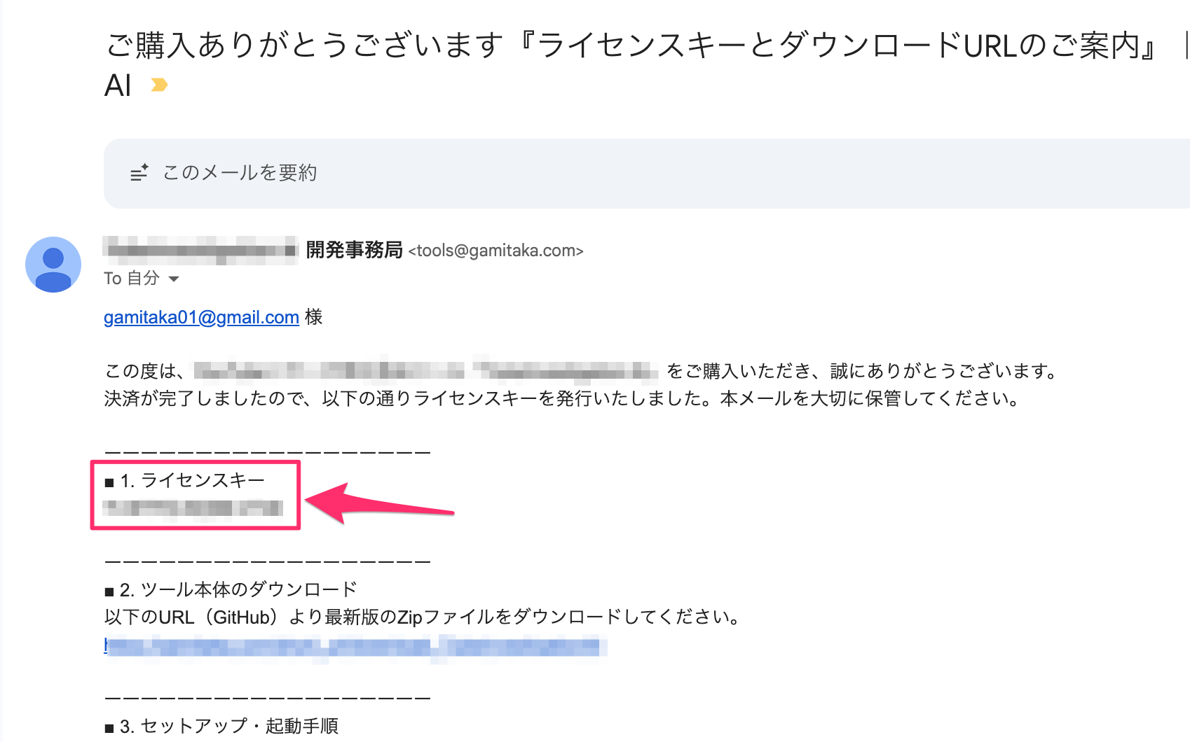 - 購入後に届いたライセンスキー(メールを確認してください)