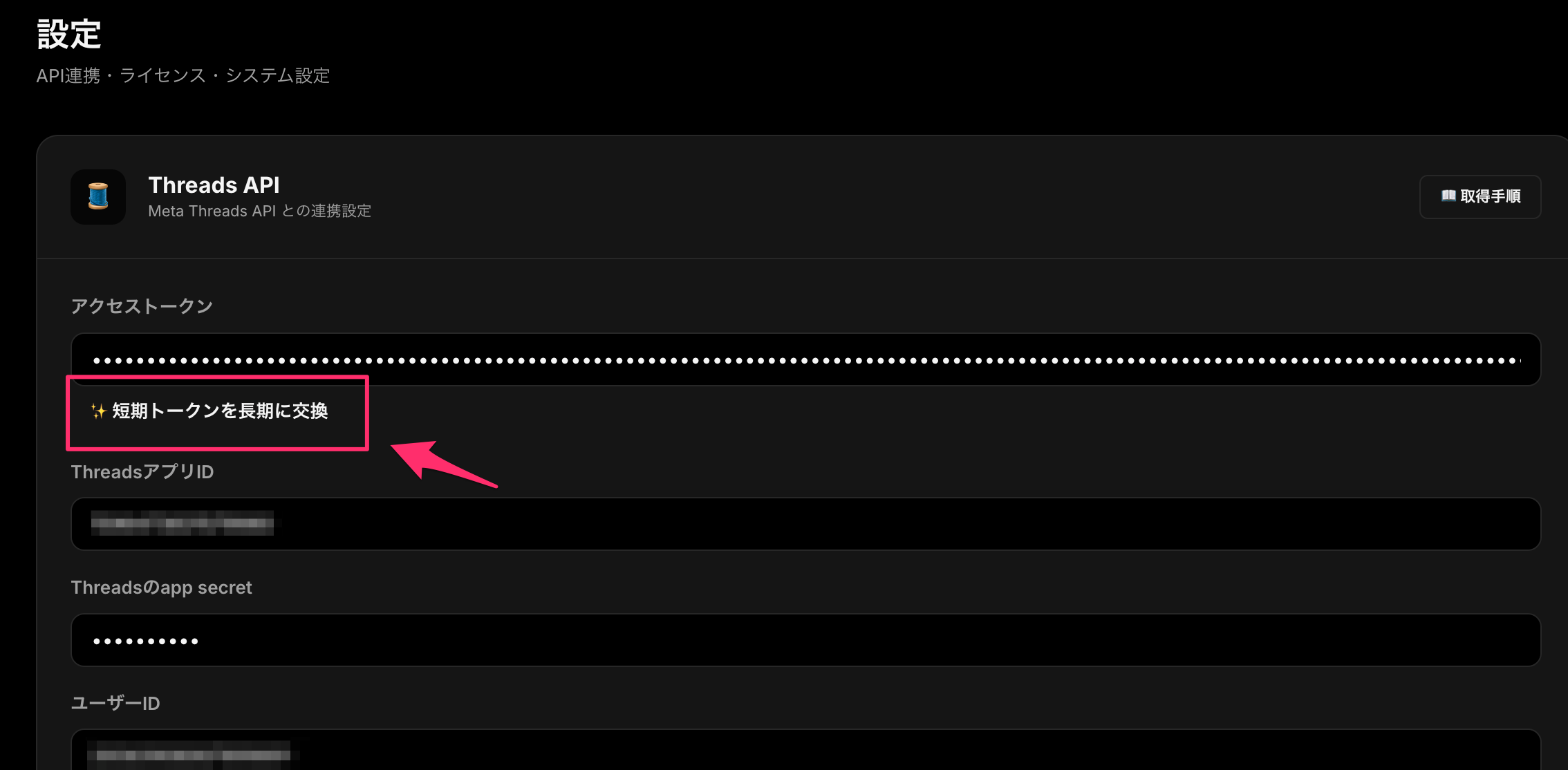 ※本来、「アドレスバーにアクセストークンを含めたURLを貼って〜」としないといけませんが、「Threads_Style」では1クリックで長期トークンへの切り替えができます!