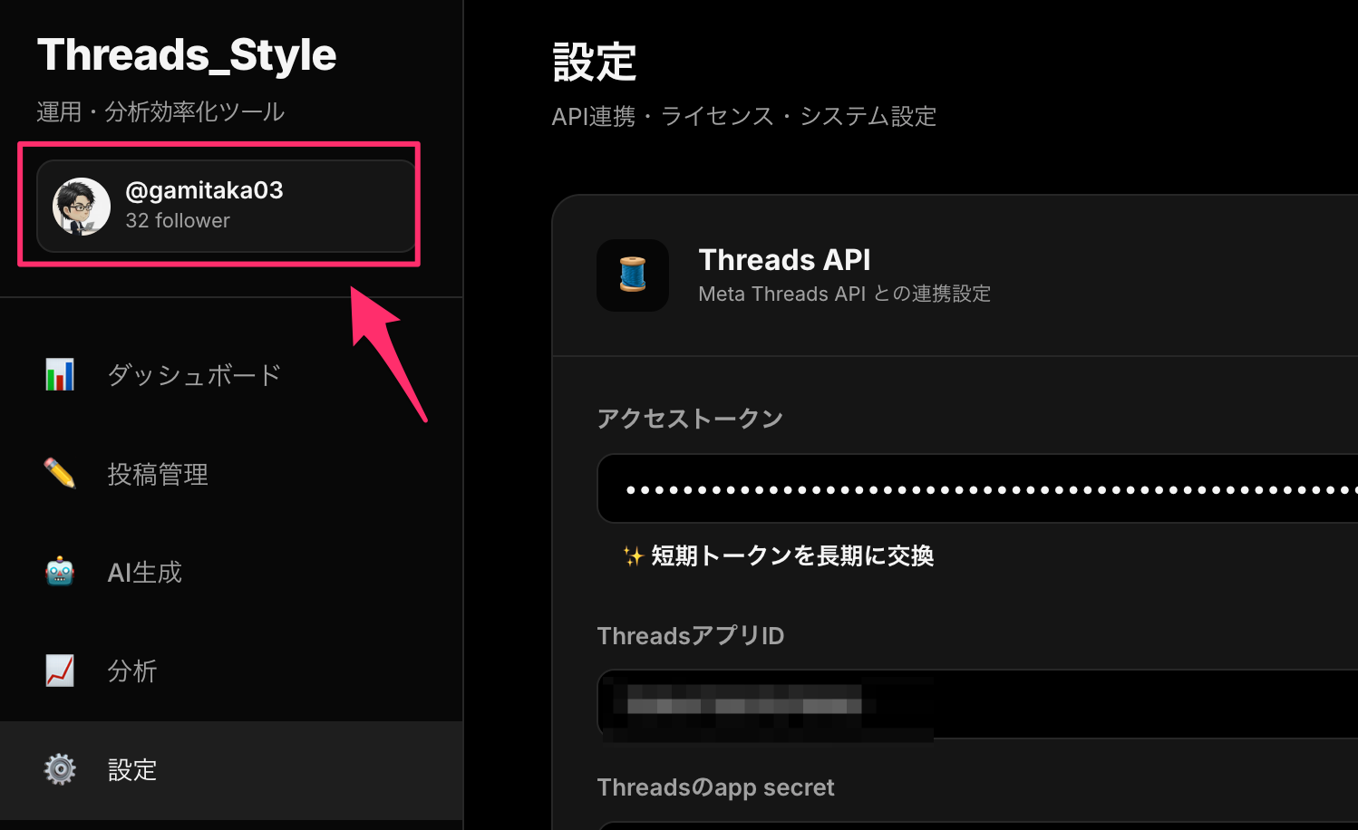 まず、「Threads_Style」とThreadsの過去の投稿と同期します。